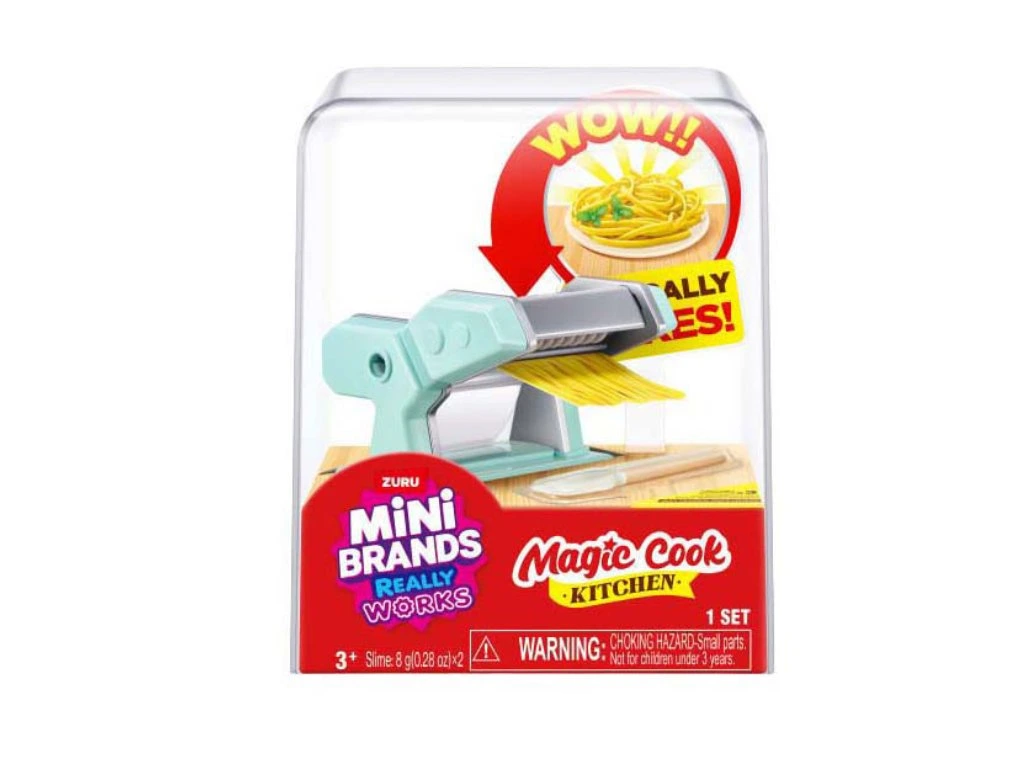Strojek na těstoviny ZURU Mini Brands Cook Kitchen je funkční mini spotřebič, který využívá UV světlo a je součástí řady Mini Brands. Obsahuje kuchyňské náčiní a skutečné ingredience pro realistickou zábavu při hraní. Vhodné pro děti od 3 let.