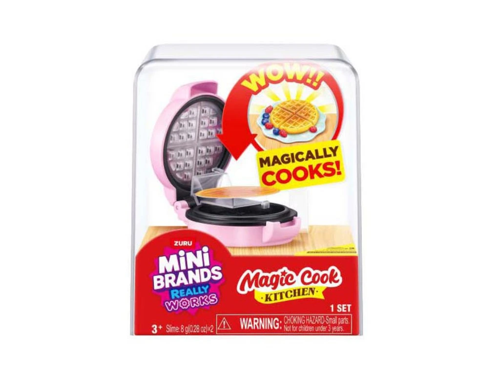 Vaflovač ZURU Mini Brands Cook Kitchen je funkční mini spotřebič, který využívá UV světlo a je součástí řady Mini Brands. Obsahuje kuchyňské náčiní a skutečné ingredience pro realistickou zábavu při hraní. Vhodné pro děti od 3 let.