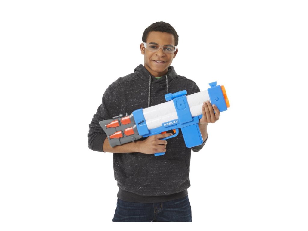 Pistole inspirovaná počítačovou hrou Roblox Arsenal. Stiskni spoušť, počkej, než se motor v pistoli aktivuje, zaměř a vystřel. Obsahuje 10 náhradních nábojů se zásobníkem. Dostřel 27 m. Velikost cca 67 cm.