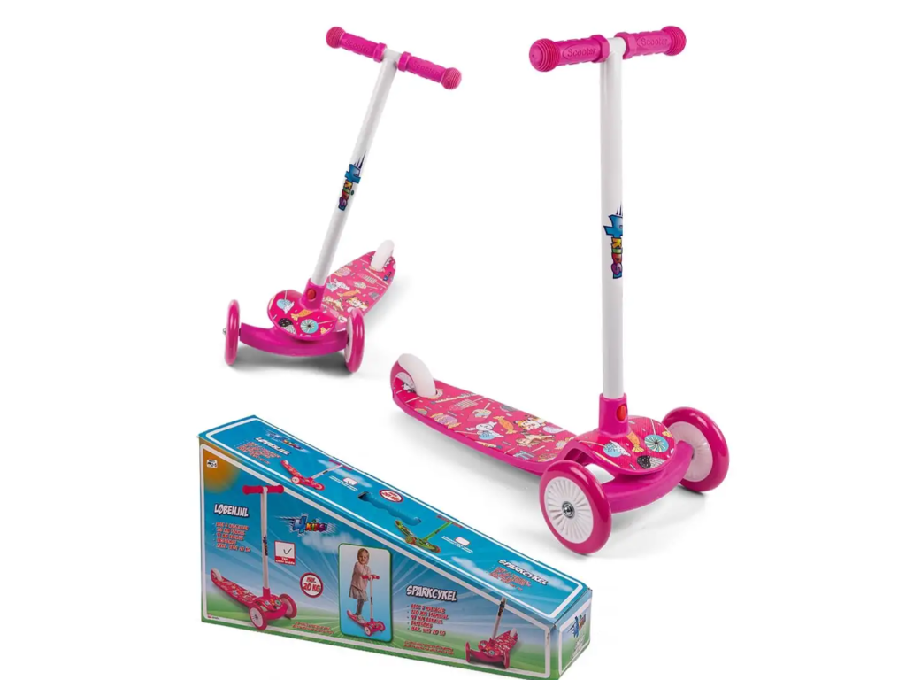 Barevná a stabilní tříkolová koloběžka určená pro děti. Chytrý tříkolový design poskytuje extra rovnováhu a bezpečnost, takže je ideální pro začátečníky.