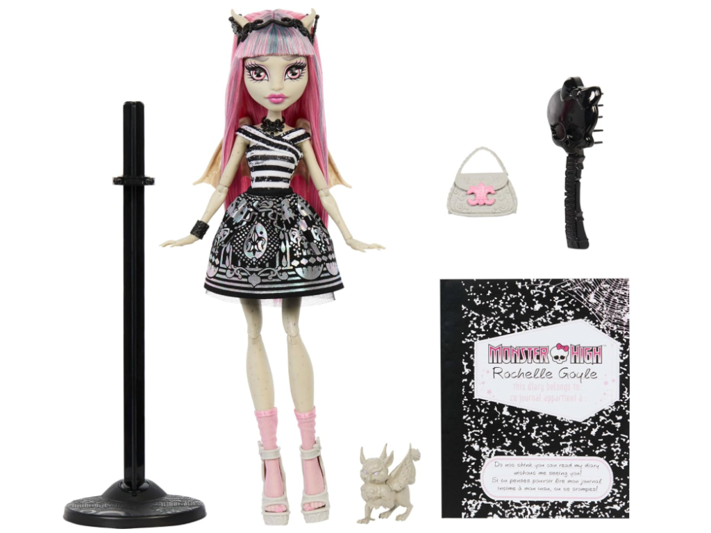 Původní panenky Monster High jsou zpět a jsou stejně úžasné jako první den školy! Je to neuvěřitelné! Panenka Rochelle Goyle má ve svém originálním oblečení s pruhovaným topem a děsivě úžasnými filigránskými detaily stejný styl jako vždy.