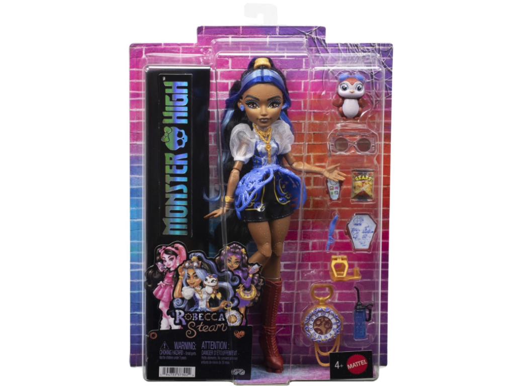 Panenka Monster High Robecca Steam je děsivý robot s nadčasovým smyslem pro módu – a to nejen proto, že se narodila v 19. století! Dodává se s roztomilým strašidelným mazlíčkem a 7 doplňky.