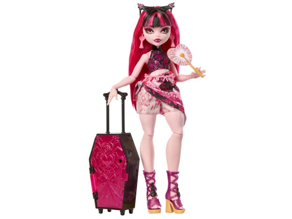 Rozbalte tento kufr a najděte třetí a poslední klíč! Odemkněte příruční zavazadlo ve tvaru lebky, které obsahuje poslední překvapení, které Draculaura potřebuje pro své strašidelné prázdninové sny! Kombinujte více než 125 možností oblečení! Draculaura je nyní připravena relaxovat u bazénu v krásné oáze s doplňky, jako jsou sluneční brýle, šátek a ventilátor, které ji v horku ochladí.