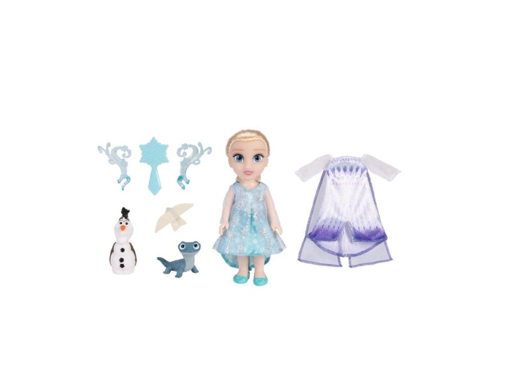 Přineste si domů kouzlo Arendelle s touto rozkošnou sadou panenek Elsa z Ledového království od Disneyho. Tato okouzlující sada obsahuje rozkošnou panenku Elsu a dva okouzlující outfity inspirované filmy Ledové království a Ledové království 2, které podporují fantazii a vyprávění příběhů.
