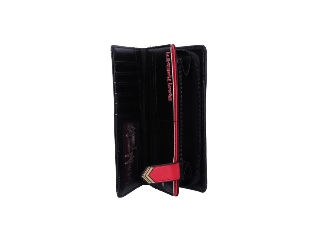 Ukažte svou věrnost rockovým monstrům s touto elektrizující, oficiálně licencovanou taškou Iron Maiden, exkluzivně pro Nemesis Now. Eddie the Trooper kráčí vpřed s šavlí v jedné ruce a potrhanou britskou vlajkou v druhé, ztělesňujíc tak nelítostné odhodlání a obětavost, které kapela projevovala po celá desetiletí. Vykročte vpřed s touto exkluzivní taškou! Ideální pro bezpečné uložení vašich peněz, s několika přihrádkami na karty a hotovost.