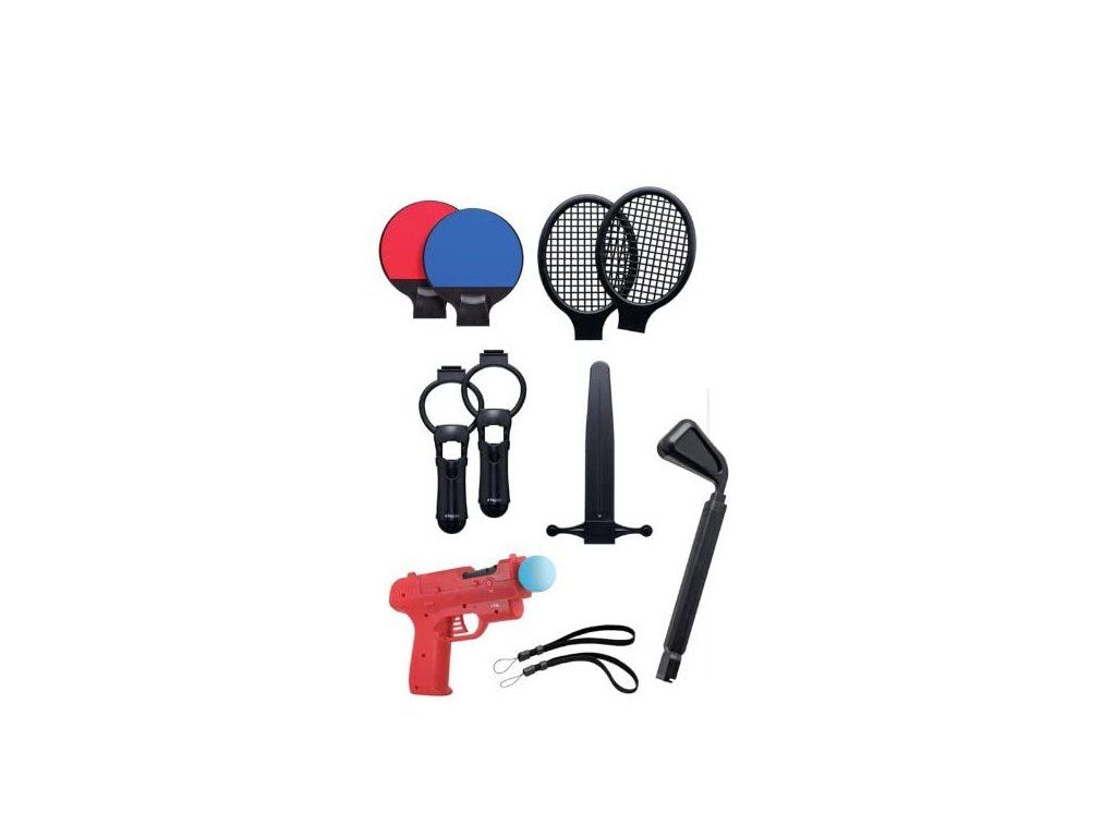 -1 pistole pro vložení pohybového ovladače PlayStation Move. 2 řemínky na zápěstí. 2 ochranné skořápky pro pohybový ovladač PlayStation Move, ke kterým můžete připevnit následující příslušenství, které je součástí balení: 2 tenisové rakety. 2 pingpongové rakety. 1 golfový klub. 1 meč.