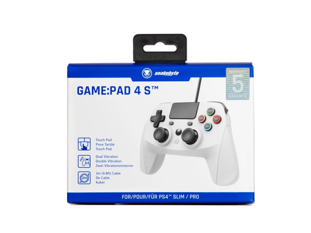 UNIVERZÁLNĚ POUŽITELNÝ: Ovladač Snakebyte GAME:PAD 4S je kabelově kompatibilní s PlayStation 4, PS4 Slim, PS4 Pro, PS3 a PC nebo notebookem (Windows 7 / 8 / 10). Pohodlný 3metrový kabel joysticku zajišťuje bleskově rychlou odezvu.