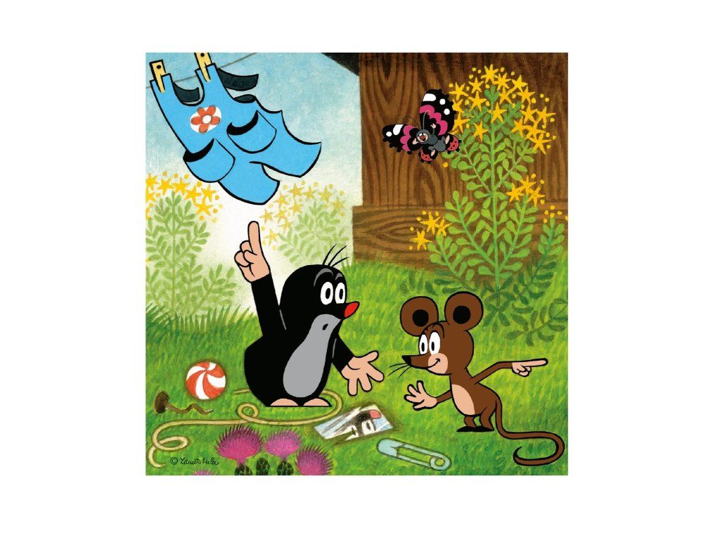 Co všechno musel Krteček podstoupit, než si mohl obléct své vysněné modré kalhoty? Část příběhu se děti dozví při skládání trojice puzzle s 55 dílky a originálními ilustracemi od Zdeňka Milera. Kromě toho, že se v duchu přenesou za svým pohádkovým hrdinou, potrénují děti také motoriku, představivost a soustředění.