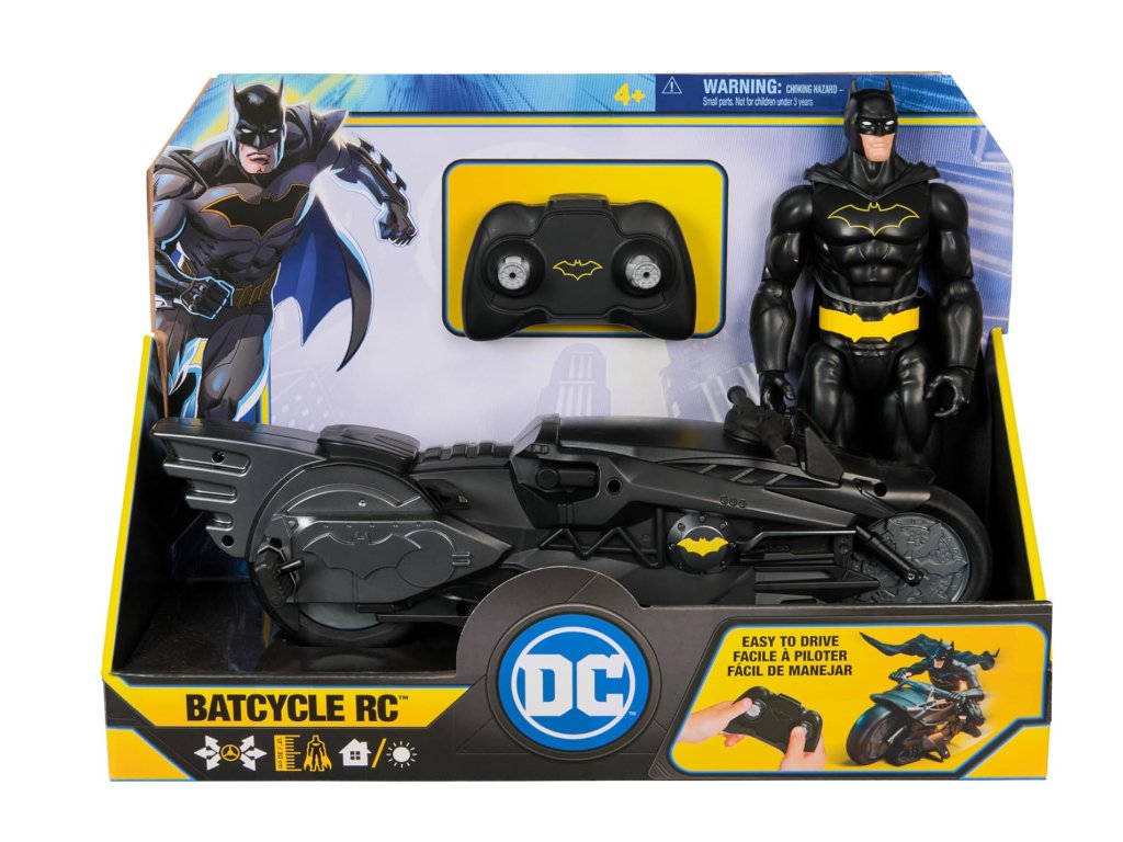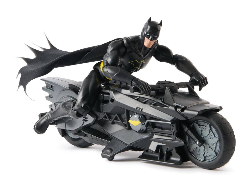 Obsahuje: 1 Batcycle, 1 dálkové ovládání a 1 30cm akční figurku Batmana.