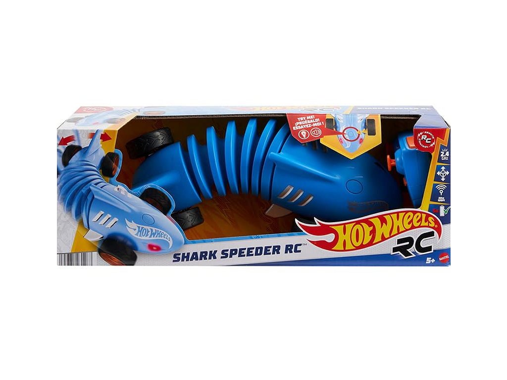 Hot Wheels RC Shark Speeder je dálkově ovládané vozidlo v měřítku 1:15, které připomíná žraloka. Hračka má červeně svítící oči, které zdůrazňují povahu tohoto predátora.