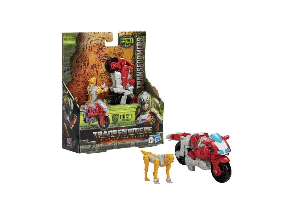 Akční figurka Transformers Arcee se převede z režimu robota do režimu motocyklu v 9 krocích. Hračka Cheetor se ve 4 krocích převede z režimu geparda na režim drápové čepele