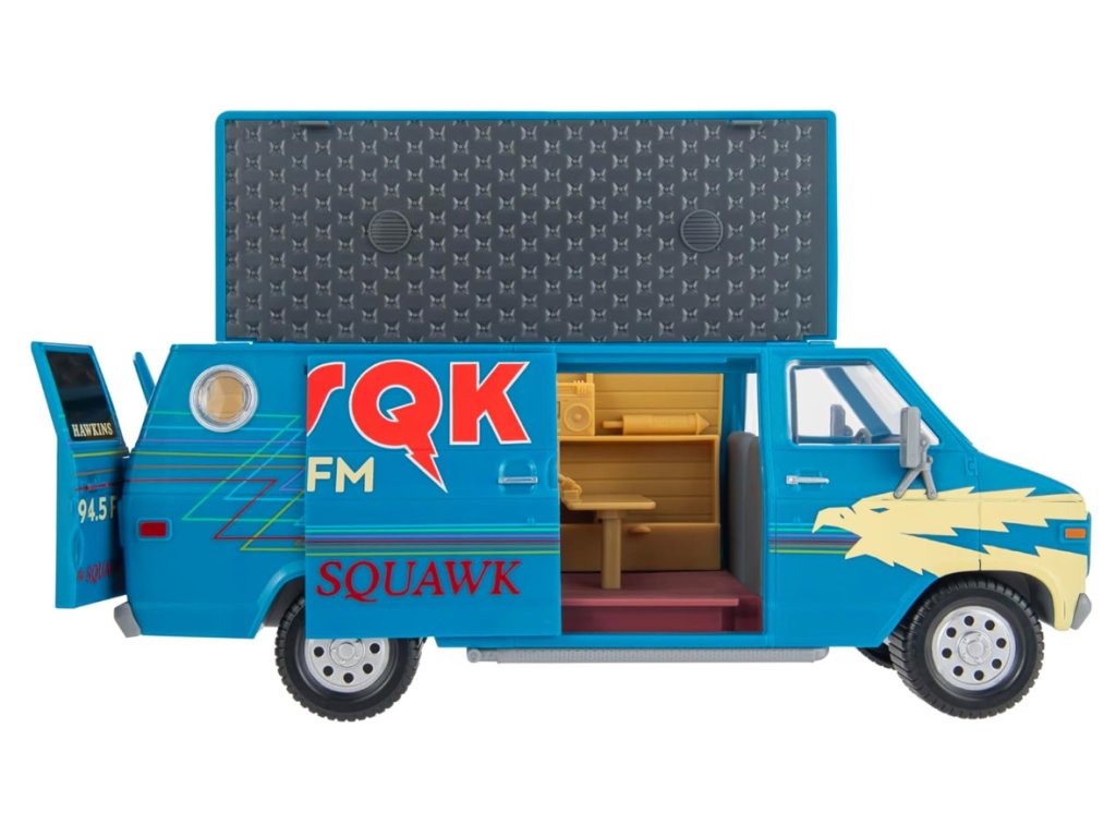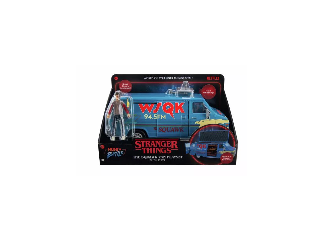 Projeďte se vlnami rádia s herní sadou Stranger Things WSQK Van! Toto 20cm elektronické vozidlo se promění v mini-sadu založenou na páté a poslední sérii Stranger Things. Obsahuje volnoběžky, satelitní anténu, otevírací zadní dveře, zasouvací střechu, posuvný pracovní stůl a místo pro tři 10cm figurky Stranger Things. Součástí balení je také 10cm figurka Steva Harringtona a šest doplňků.