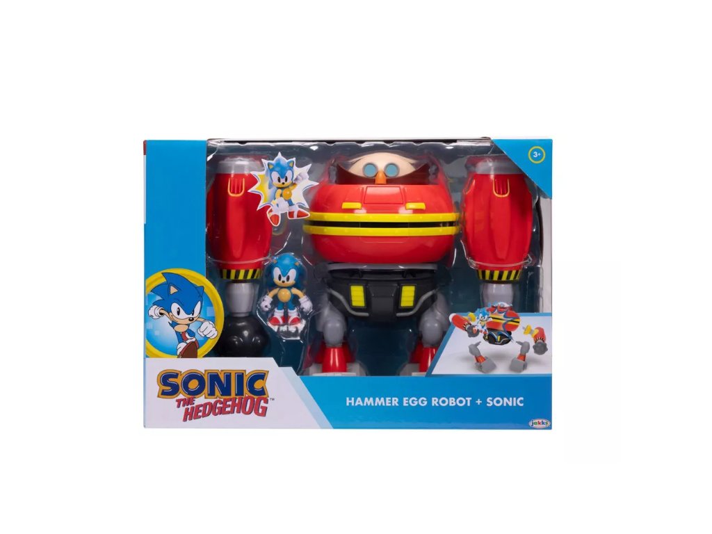 Připravte se na napínavé souboje s herní sadou Hammer Egg Robot + Sonic Deluxe! Tato akční sada obsahuje plně kloubovou figurku Sonica o výšce 6,3 cm a 23 cm robota Hammer Egg, kteří připravují půdu pro klasické bitvy dobra proti zlu. Díky útočné akci s 360° otočkou, funkci rozbití a projektilním dělovým ramenům si děti mohou znovu vytvořit své oblíbené momenty z videoher Sonic – nebo si představit zbrusu nová dobrodružství. Pro fanoušky Sonica je to dokonalý interaktivní herní zážitek od JAKKS Pacific.