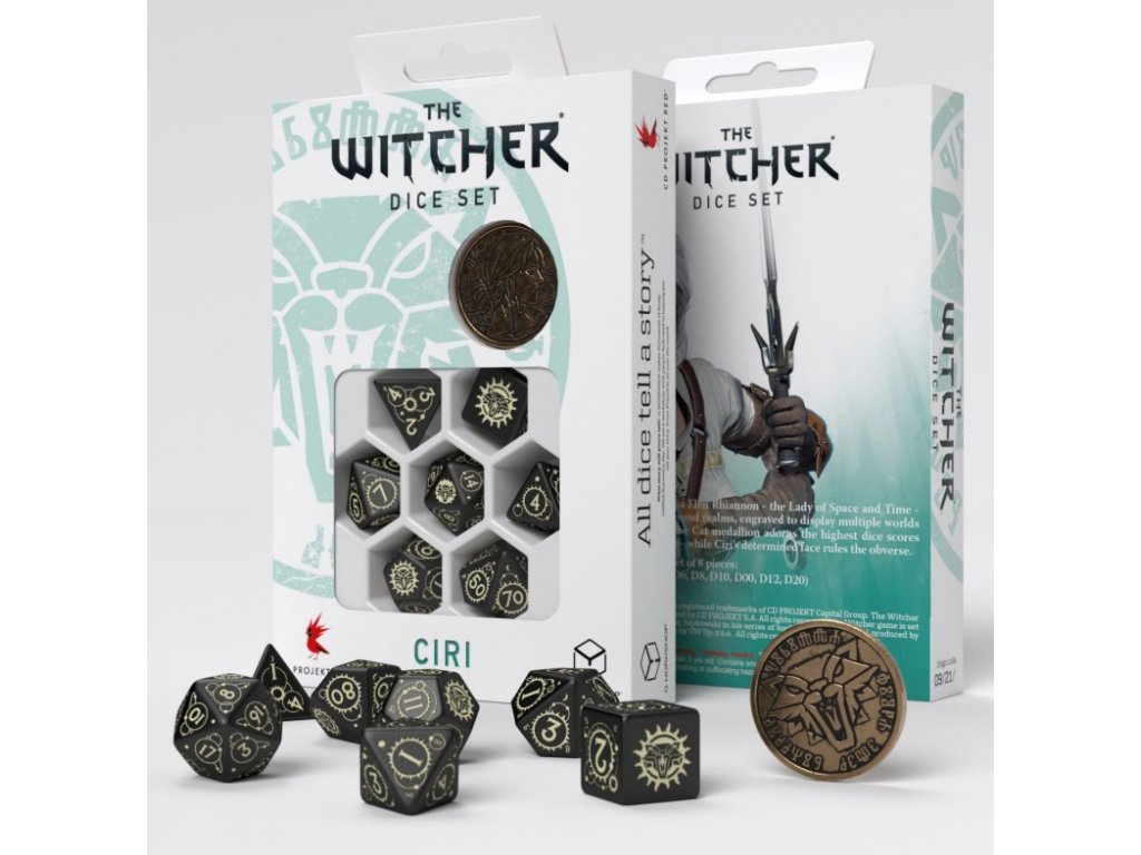 Sada sedmi hracích kostek různých formátů inspirovaná kultovním světem Zaklínače (Witcher) oživí vaše sezení u Dračáku! V balení najdete i unikátní minci.