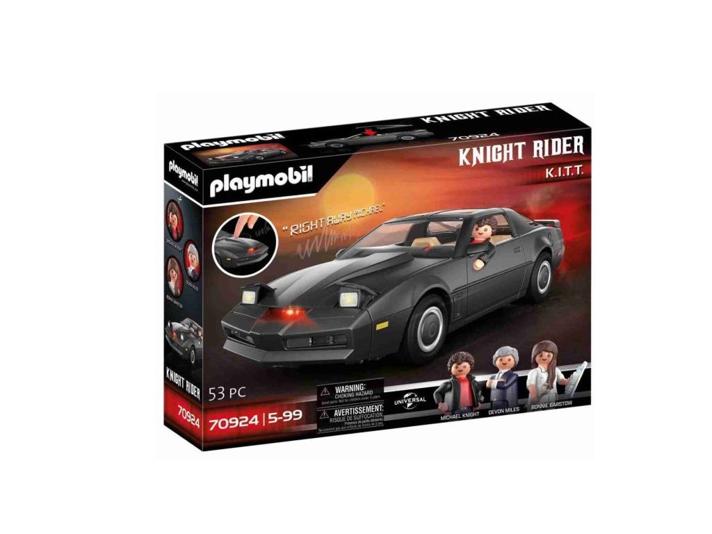 Obsahuje Michaela Knighta, Devona, Bonnie a další doplňky. "Tady přichází - Knight Rider - Auto, počítač, muž. Knight Rider - Muž a jeho auto bojují proti bezpráví." Pravděpodobně mrtvý policista s novou identitou, poháněný touhou po spravedlnosti, se vydává s pomoc K.I.T.T., futuristického vozu s umělou inteligencí, high-tech vybavením a zbraněmi, v boji proti zločinu. Nyní K.I.T.T., legendární zázračné auto ze série hitů 80. let Knight Rider, vstupuje do vozového parku PLAYMOBIL.