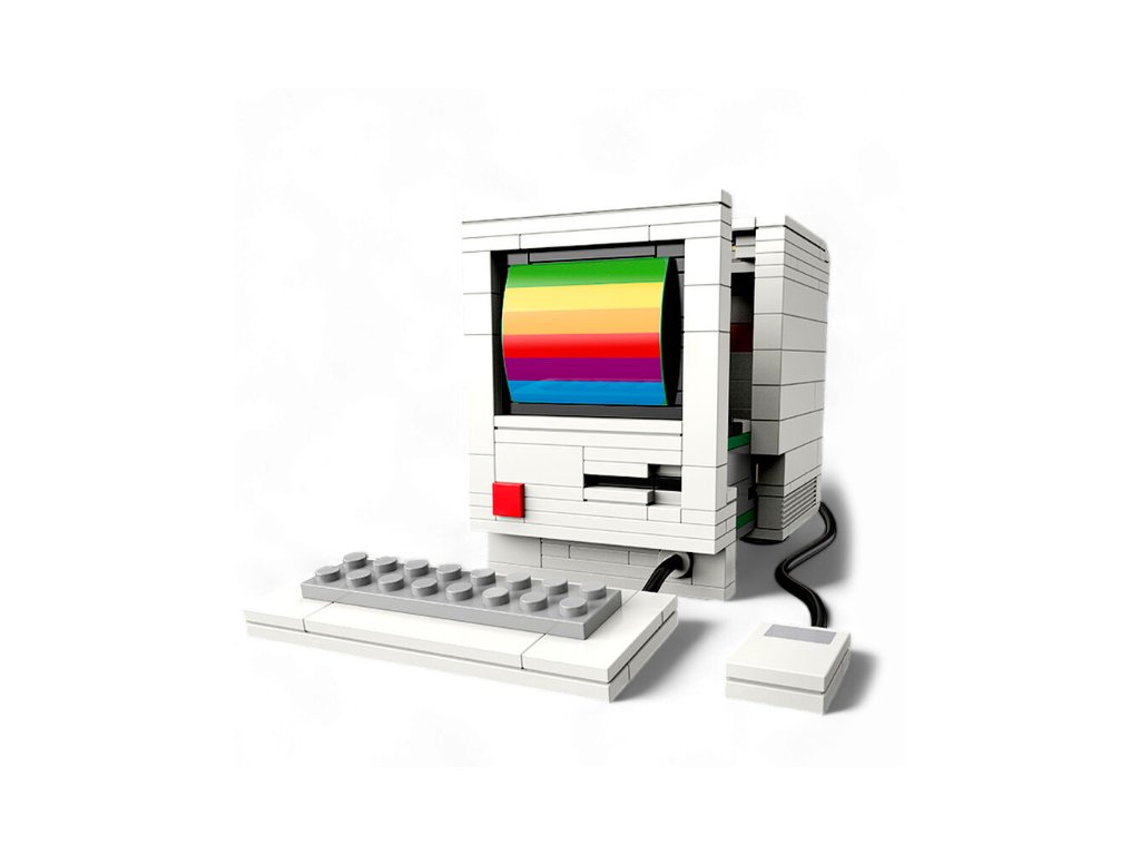 Rozměry: 10x28x9 cm. Věk: 8+. Její design vzdává hold ikonickým systémům z 80. let, včetně klávesnice, myši a obrazovky s duhovým efektem, vše znovu vytvořené z vysoce kvalitních kostek a bez použití lepidla. Je součástí kolekce Bricks Pop Series, spolu s dalšími vintage vychytávkami, jako jsou rádia, televize a klasické konzole.