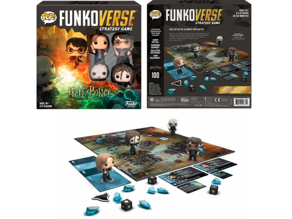 Ve hře Funkoverse si hráči ve 4 scénářích zahrají za své oblíbené postavy z filmu! V každém hracím kole si hráč vybere jednu postavu, se kterou může zahrát 2 základní akce nebo použít například jednu ze speciálních akcí dané postavy. Hráči musí vymyslet tu nejlepší strategii, jak nakombinovat postavy, jejich speciální schopnosti a předměty, aby získali co nejvíce bodů a vyhráli!Hra obsahuje figurky: Harry Potter, Lord Voldemort, Bellatrix Lestrange a Hermione Granger Dále obsahuje 2 herní plány: Příčná ulice a Komnaty nejvyšší potřeby Hra je v anglickém jazyce.