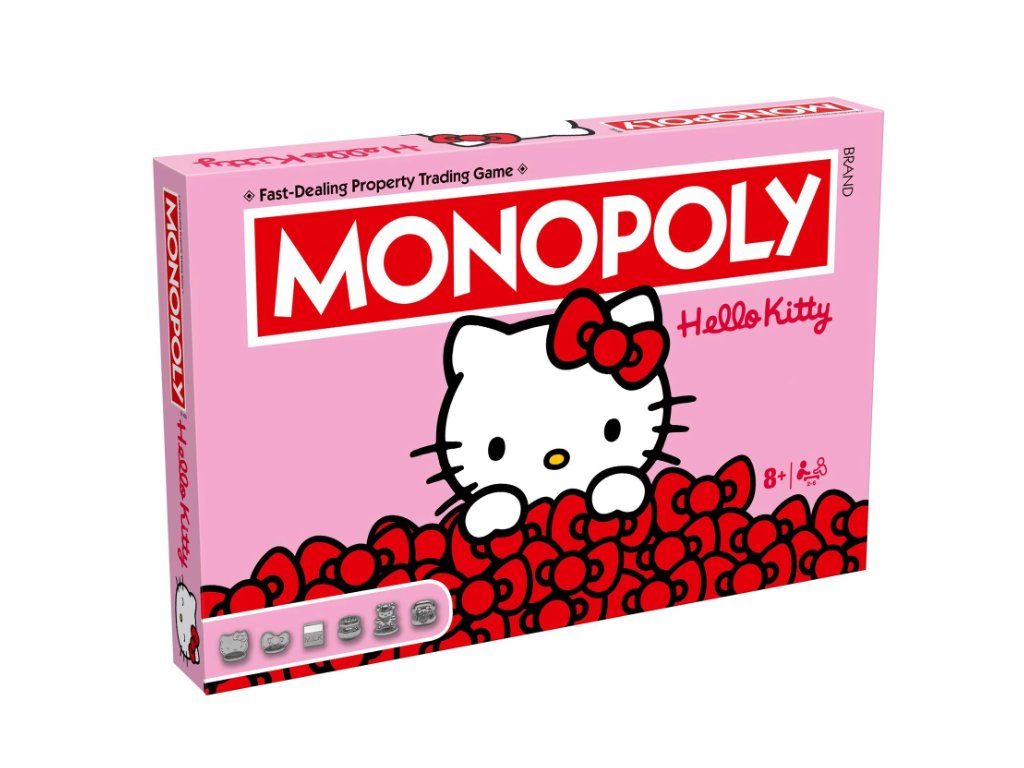 MONOPOLY: Hello Kitty. Projděte si celou tuto rychle se rozvíjející hru na obchodování s nemovitostmi a uvidíte Hello Kitty v různých outfitech, jak dokončuje své oblíbené aktivity na oslavu 50. výročí. Tato oficiálně licencovaná klasická hra Sanrio Kawaii je skvělým dárkem pro každého fanouška Hello Kitty a je nejen nezbytným dárkem pro dětské párty, ale také pro rodinné herní večery. Díky svému rozkošnému designu je tato hra nejen zábavná, ale může také fungovat jako jeden z doplňků do pokoje Hello Kitty. Tato zábavná hra přináší do vašeho domova atmosféru Kawaii a radost z nejrozkošnější kočičky na světě. Tato Hello Kitty edice MONOPOLY zaručeně nadchne fanoušky MONOPOLY i milovníky Hello Kitty, takže hoďte kostkami a připravte se!