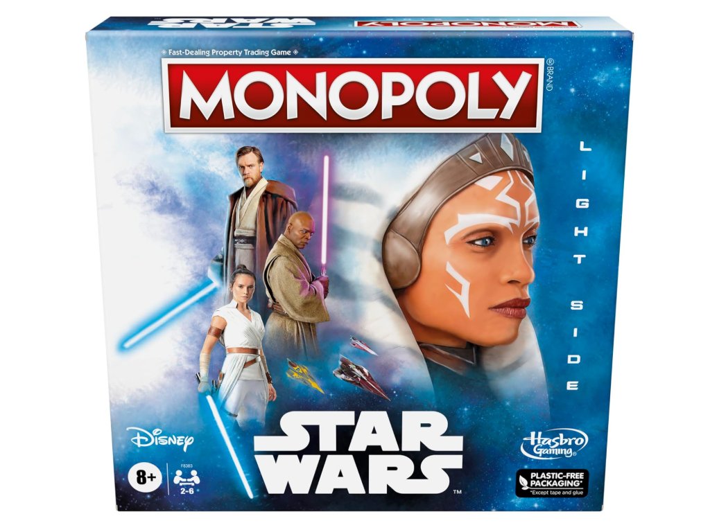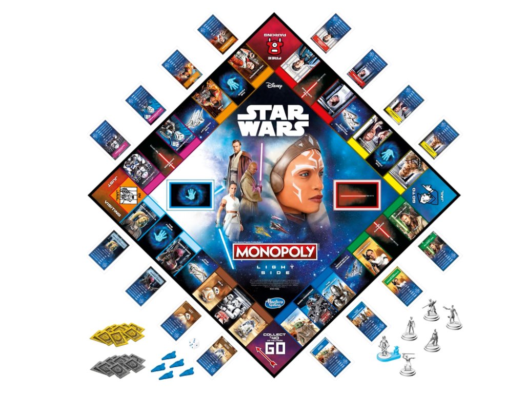 Tato hra Monopoly: Star Wars Light Side Edition oslavuje cestu Jediů s tématy, grafikou a herními komponenty inspirovanými franšízou Star Wars.