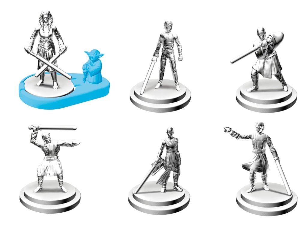 6 žetonů postavy Zinc: Hrajte za jednu ze šesti postav citlivých na Sílu: Ahsoka Tano, Luke Skywalker, Mace Windu, Obi-Wan Kenobi, Rey Skywalker nebo Anakin Skywalker.